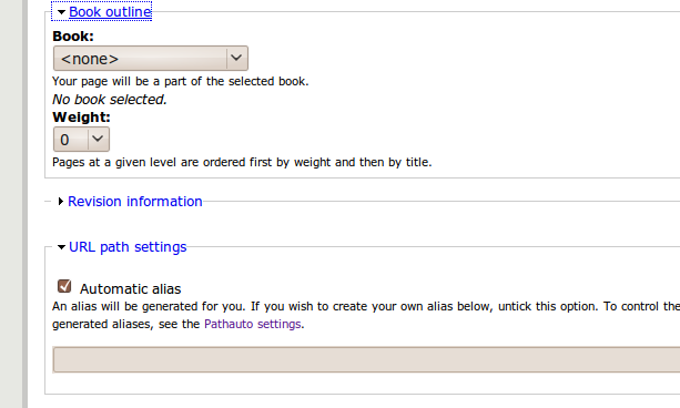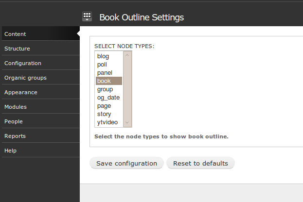 Then I searched for the solution to show book outline form part and the book outline module in only specified Drupal nodes/content types. At the d.o (I hear this in all screencasts and podcasts - its Drupal.org ;) ) site I found this node: http://drupal.org/node/251798 - and a code snippet by mooffie. But the code was very basic and not configurable or flexible.A Simple Move: